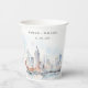 Detroit Michigan Watercolor Landscape Wedding Paper Cups