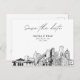 Modern Detroit black and white save the date postcard invitation on matte paper. The front showcases a stunning sketch, setting the perfect tone for your wedding day. Add customise the text to make it your own. Enter the Zazzle design tool for additional design customisations. Automatically comes on matte paper. Adjust to semi-gloss if you prefer.