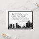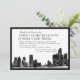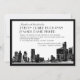Vintage inspired landscape wedding invitations feature a silhouette image of Downtown Detroit's city skyline, elegant and glamourous art deco style fonts, and classic black and white colour scheme. This version of the design includes a black printed border.