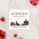 Vintage style custom "Detroit Wedding Celebration" napkins feature a unique etched image of the Downtown Detroit city skyline taken in the evening along the riverfront, combined with vintage Art Deco typography, and a classic black and white colour scheme. Personalise the custom monogram text with the bride and groom's names and wedding date.