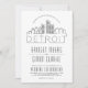 A unique wedding invitation for a marriage taking place in the historic city of Detroit. This invitation features a stylised illustration of the city's unique skyline with its name underneath. This is followed by your wedding day information in a matching open lined style. On the reverse side of the invitation is a deep grey colour to complement the look and feel. All individual elements of the invite card are unlocked so feel free to change or add any details necessary by using the customisation function. You can add a photo to the reverse side and add a black and white filter to it. Also, you can experiment with the many unique thicker paper types and cuts available. Matching RSVP cards, belly bands, tote bags, and more are available. Have fun being creative and making it your own!