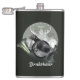 The flask itself is fine. It’s a cheap flask, obviously bought in bulk, however am prepared to overlook that. Given that it is a personalized item, I would have liked to have seen gift boxing instead of the generic packaging. Terrible printing, and/or quality. It’s a cheap, tacky vinyl. It is not cut straight and is also applied in a way that it is overhanging the bottom, causing the glue to catch on items and it will eventually roll and tear, damaging the wrap.