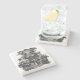 The coasters are gorgeous, a quality feel and heavy weight. They look like a precious archeological find. A rustic stone juxtaposed with a modern floral black and white print. I like the way the print goes slightly imperfect on the cut stone edges giving them a kind-of natural beauty.