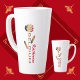 Personalised large latte mug features the Belgian flag in a rose motif. The flower has the black, yellow, and red colours of the tricolor. The stem reads BELGIUM, also in the tricolor. Now you can have your own Belgian Rose. Design shows on two sides of mug. Makes a lovely housewarming gift.