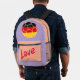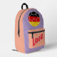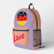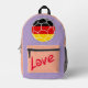 Stylischer Rucksack für Fußballfans. Design in Rosa und Lila mit Deutschland-Flagge und „Love“-Schriftzug. Ideal für Schule und Sport.
