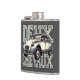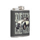 The flask itself is fine. It’s a cheap flask, obviously bought in bulk, however am prepared to overlook that. Given that it is a personalized item, I would have liked to have seen gift boxing instead of the generic packaging. Terrible printing, and/or quality. It’s a cheap, tacky vinyl. It is not cut straight and is also applied in a way that it is overhanging the bottom, causing the glue to catch on items and it will eventually roll and tear, damaging the wrap.