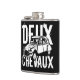 The flask itself is fine. It’s a cheap flask, obviously bought in bulk, however am prepared to overlook that. Given that it is a personalized item, I would have liked to have seen gift boxing instead of the generic packaging. Terrible printing, and/or quality. It’s a cheap, tacky vinyl. It is not cut straight and is also applied in a way that it is overhanging the bottom, causing the glue to catch on items and it will eventually roll and tear, damaging the wrap.