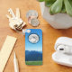 This keychain has a landscape picture as the background. The landscape is of the Olympics Mountain Range in Washington State from Hurricane Ridge. There are Back-tailed Deer feeding in the meadow of wildflowers. On the front side: The artist logo is at the top of the keychain. It is a swan and wolf with a full moon. In black, a half circle wraps around the image at the top, and Developing Nature Gallery wraps up from the bottom of the circular design. On the back of the keychain, in white lettering: Hurricane Ridge and Black-tailed Deer, in a Field of Wildflowers.