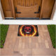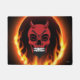 Red Devil Skull Skeleton with fire and flames background. Add text or customise size of your Devil Demon Skull Welcome Mat.