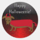 Happy Halloweenie! Whimsical Dachshund dressed up as a devil for Halloween Stickers