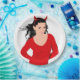 GIRL DRESSED IN DEVIL COSTUME FOR HALLOWEEN, COMPLETE WITH DEVIL HORNS
