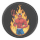 Devil with trident in the fire, Evil laughing devil, Angry red demon illustration, muscular demon with glowing eyes, strong sports cartoon character,