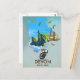 Devon Map Travel poster featuring cliffs , The Ocean and a vintage style motorcycle.