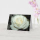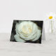 A dewy white rose adorns the greeting card. The interior is blank so that you can add your own sentiments.