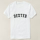 Dexter! Is your name Dexter? Or do you have a husband, boyfriend, male family member or male friend named Dexter? If so, this "Banner" shirt is exactly the gift that you're looking for! The design features "Dexter" in arched black lettering across the chest in the classic College font.