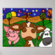 Hilarious cute cow, pig, sheep, rooster, and birds folk art barnyard design. Unique and fun and very colourful and a great gift idea. Can also add custom text and change background when ordering. Sure to bring a smile.