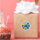 The Dharma wheel, in a prism spectrum of colours. Shown on a pale blue background but you can click "customise" to change to other colours!