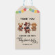 Stretching across the top of the gift tag, a dynamic and colourful fiesta banner sets the tone for your baby shower celebration. Featuring papel picado flags in a medley of shapes and patterns, it adds a festive touch that promises an unforgettable fiesta-style gathering. The words "Baby Shower Fiesta!" in playful fonts announce the joyful occasion.