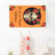 Dia del los muertos party banner with skull and flowers. Wow your partygoers with this beautiful party logo banner for you big bash. Han git at the entrance to the party, then after the party keep it as memorabilia and use it again next year. This banner is versatile in that you may also personalise it for Halloween.