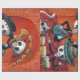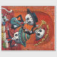 This nice piece of Dia de Los Muertos art from Madame Colonelle with one of Skeleton El Mariachi Bands from Mexican Festivals. One of the most popular Mexican Traditions is that live music is brought to the streets. During Day of the Dead celebration, those skeletons with colourful, amazing sugar skulls make that Mexican holiday unforgettable. Mexican Day of The Dead art is the speciality of Madame Colonelle.