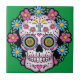 Dia de los Muertos (Day of the Dead) sugar skull is surrounded by colourful flowers.