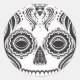 Day of the Dead sugar skull design inspired by Mary Tyler Moore. White design elements based on traditional Calavera Dia de los Muerte style.