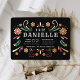 Celebrate a Day of the Dead themed birthday with these cute invitations featuring colourful flowers trimmed with gold foil, surrounding your party details in white lettering on a black background.