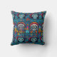 Dia de Muertos, blue sugar skulls pattern Cushion