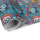 Adorning the wrapping paper are an assortment of colourful sugar skulls, each one meticulously designed with vivid and lively hues. These skulls serve as the focal point of the pattern, representing the souls of the departed. They are adorned with traditional patterns, including delicate flowers, intricate swirls, and geometric shapes. Each skull is unique, showcasing a blend of vibrant purples, fiery oranges, electric blues, and sunny yellows. These colours pop against the cool blue background, creating a captivating contrast.