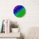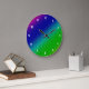 Diag Rainbow Gradient Floral Pattern Blue Green Large Clock