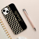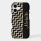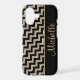 This is an especially pretty case for her, with black chevrons contrasted with silver gold faux glitter chevrons in a diagonal pattern. A black border holds her name in matching gold. A unique, elegant, and attractive case! *Please note - the image is printed on the case, which contains no actual glitter or metallic substance.*