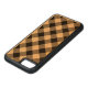 Diagonal Black Gingham Pattern on Cherry Wood Carved Wood iPhone Case