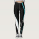 Diagonal Blue Stripes Pattern Black and White Leggings