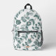 Diagonal Botanical Teal Floral Pattern Printed Backpack