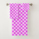 Diagonal Hot Pink & White Buffalo Plaid Towel Set