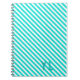 Diagonal neon blue and white stripes initials notebook