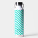 Diagonal neon blue and white stripes initials water bottle