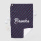 Add your name on this diagonal purple, blue and black stripes pattern design.