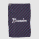 The golf towel exceeded my expectations! My husband actually approved of it! He liked the picture quality, thickness and overall usefulness of the golf towel I ordered to commemorate his lowest ever golf score. He liked it so well that I ordered 8 more towels with photos of his home golf course. Each one of the eight has the name of one of his golf group members. I will give them as party favors at my husband's 70th birthday party later this year. The different names were easy to add because the Zazzle template is so very easy to use. The colors were bright and authentic in all 9 of the towels that I made. The one of the 9 that I ordered has come out of the wash and line dry looking great.