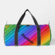 Diagonal Rainbow Stripes Duffel Bag with customisable text.. Other bag options available in drop-down menu.