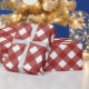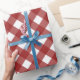 Sophisticated wrapping paper features red and white diamonds in a bold diagonal buffalo plaid. The red and white gingham pattern was designed from scratch.
