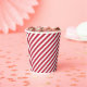 Diagonal red and white stripes pattern paper cups