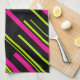 Diagonals in Lime Green, Hot Pink and Black Tea Towel
