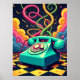 Step back in time and dial into a surreal dimension with this vibrant artwork, where nostalgia takes a fantastical turn. This piece tells the story of an iconic vintage rotary phone, reimagined not as a relic, but as the centerpiece of a high-energy, pop art dreamscape. Its glossy pastel teal body grounds the image, while its cord explodes into a chaotic, glowing tangle of neon "spaghetti" in electric pink and lime green, reaching towards a sky filled with cartoonish, swirling clouds. The piece is special because it masterfully blends the graphic energy and bold colours of classic pop art with the dreamlike, illogical imagination of surrealism. It's more than a poster; it's a conversation starter and a unique statement piece for anyone who appreciates the beautiful collision of the past, the present, and a truly mind-bending aesthetic.