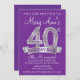 This milestone 40th diamond birthday invitation features a lovely purple background and a diamond and silver number 40. This elegant and classy birthday invite is perfect for celebrating a 40th!