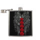 The flask itself is fine. It’s a cheap flask, obviously bought in bulk, however am prepared to overlook that. Given that it is a personalized item, I would have liked to have seen gift boxing instead of the generic packaging. Terrible printing, and/or quality. It’s a cheap, tacky vinyl. It is not cut straight and is also applied in a way that it is overhanging the bottom, causing the glue to catch on items and it will eventually roll and tear, damaging the wrap.