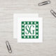A square business card template with initials placed inside a square box with a decorative frame. In this version the initials are in the Integrity bold font. Name and profession/job title along with telephone, email and website address in black on the reverse side on a white background, using variations of the Matt Antique font.