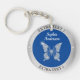 Diamond Butterfly Silver Metal Name/Info Deep Blue Key Ring