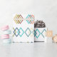 This wrapping paper has a mid-century modern design of sets of three diamonds in various retro colours scattered about the design. If you like the design but prefer different colours, message me.