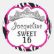 Diamond Crown Zebra Pink Classic Round Sticker
